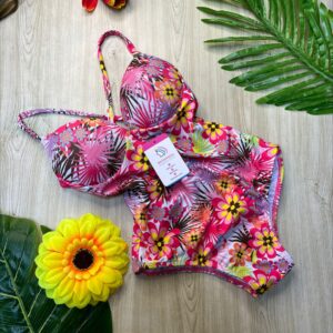 🌺💕 Enterizo “Flor de Verano” – Rosa tropical con flores vibrantes 💕🌺