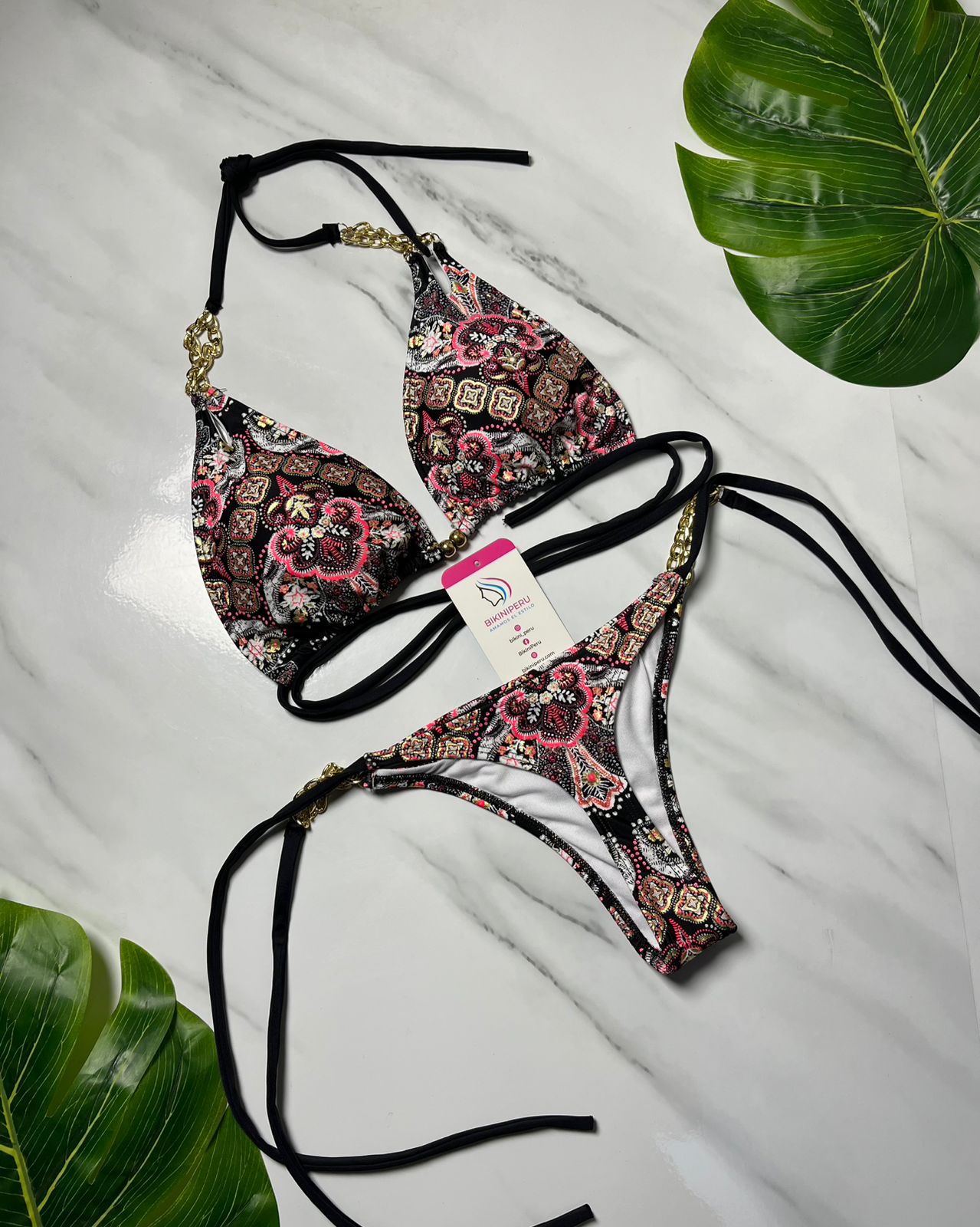 Si buscas algo diferente, atrevido y con estilo, este bikini es para ti. El diseño bohemio con cadenas doradas te da un aire exótico y sofisticado, ideal para destacar en la playa o piscina. ✨