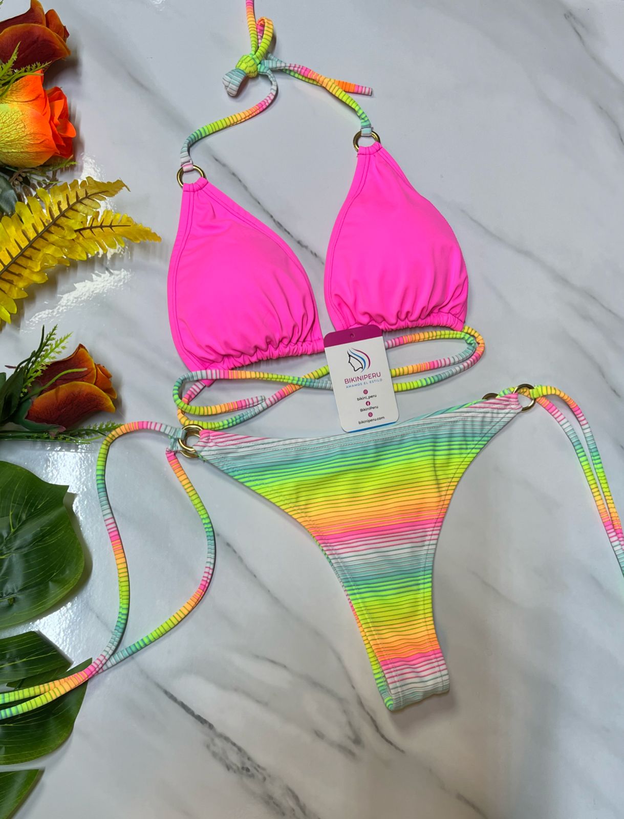 El “Pop Fantasy” es un bikini diseñado para quienes aman destacar. El top sólido en rosa fucsia intenso crea un contraste perfecto con la trusa degradada en tonos neón pastel, creando un look juvenil, divertido y muy de tendencia. ¡Ideal para fotos y días de verano sin reglas! 💥📸